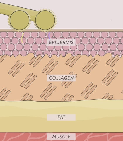 The spikes on the rollers work similar to a derma roller/micro-needling, but without needles or puncturing the skin. The spikes, when gently rolled over the skin, stimulate fibroblasts and increase collagen production, which helps to heal and rejuvenate the skin. Don’t worry – the spikes do not hurt!